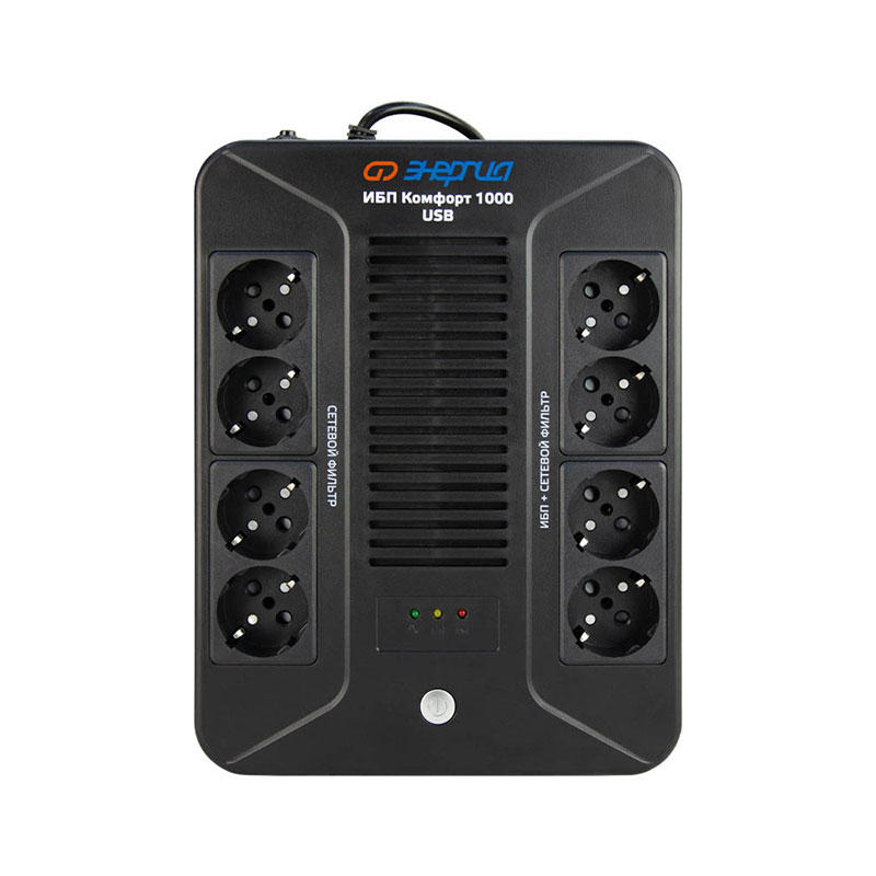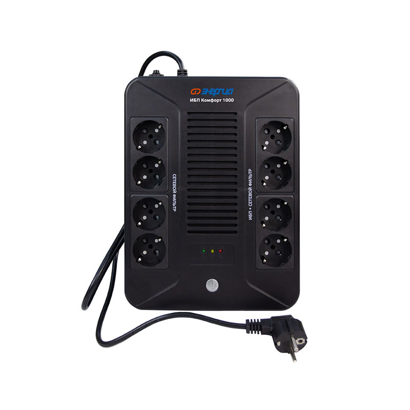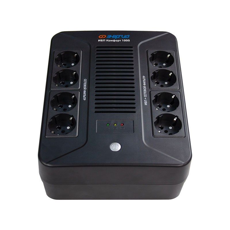 ИБП «Энергия Комфорт» — это решение для обеспечения бесперебойного питания бытовой и офисной электроники — от персональных компьютеров и офисной техники до компонентов систем «умного дома». Его основная задача — защитить чувствительную электронику от типичных проблем в сети: скачков напряжения, импульсных помех и полного отключения электричества.
