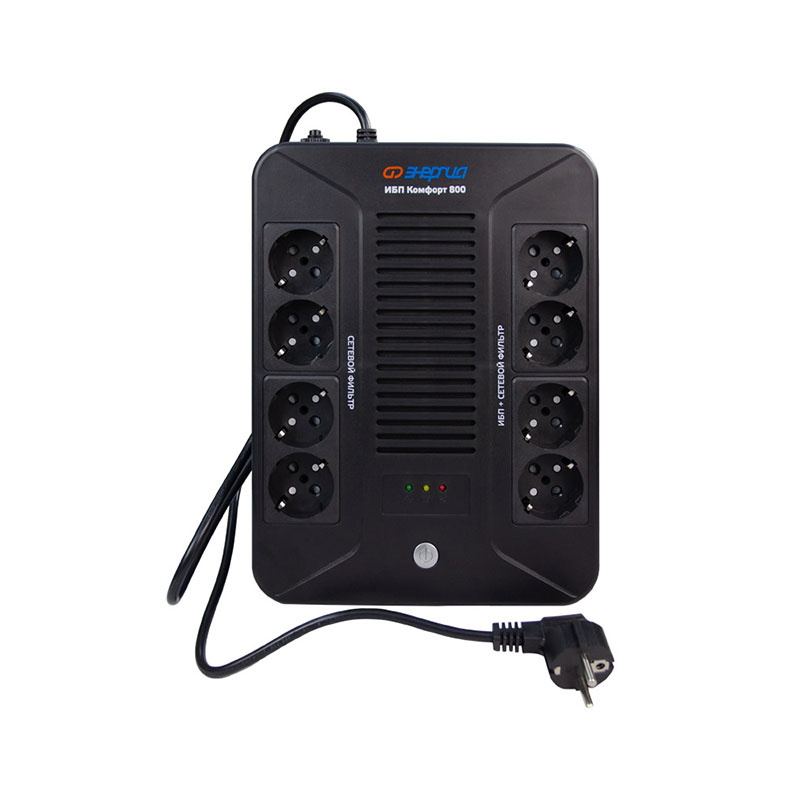 ИБП «Энергия Комфорт» подходит для обеспечения бесперебойной работы вашего домашнего или офисного оборудования: от компьютеров и систем видеонаблюдения до умного дома и платежных терминалов. Простота эксплуатации делает модель идеальной для повседневного использования.