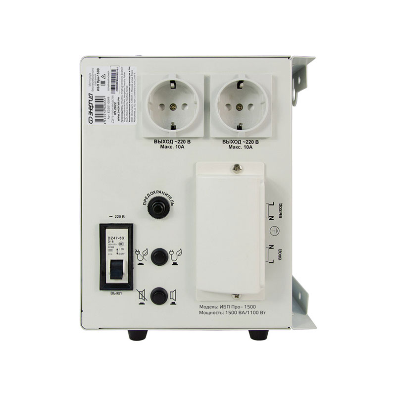 Для обеспечения надежной работы ИБП оснащен комплексом защит: от отклонений напряжения в сети, перегрева трансформатора, перегрузки и короткого замыкания, а также системой интеллектуального контроля батареи, предотвращающей ее перезаряд и глубокий разряд.