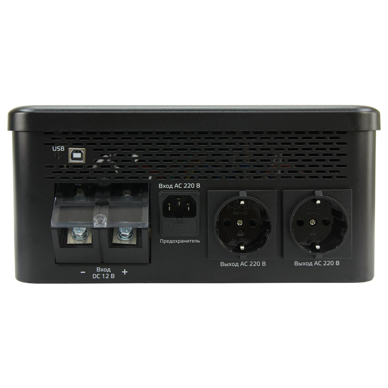 ИБП оснащён портом USB Type-B для мониторинга и управления, что делает настройку и диагностику прибора простой и удобной через персональный компьютер. Это улучшает взаимодействие с пользователем и позволяет в реальном времени отслеживать его работоспособность и заряд батареи.