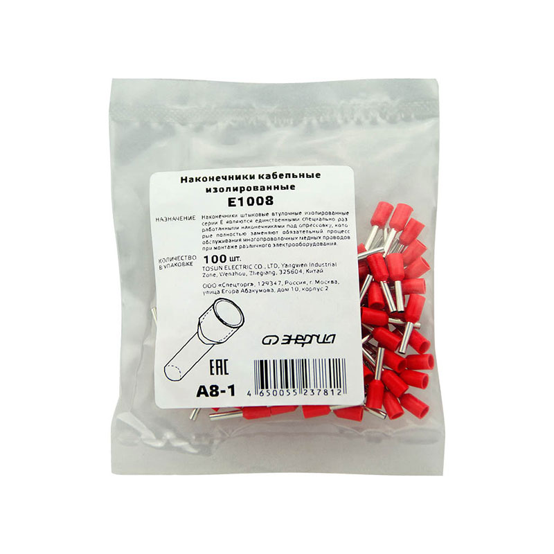 Наконечник штыревой втулочный изолированный НШВИ 1.0-8 (E1008) (100шт/упак) ЭНЕРГИЯ купить недорого