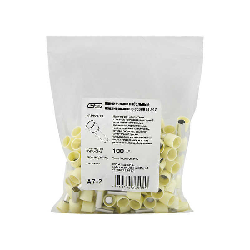 Наконечник штыревой втулочный изолированный НШВИ 10.0-12 (E10-12) (100шт/упак) ЭНЕРГИЯ купить недорого