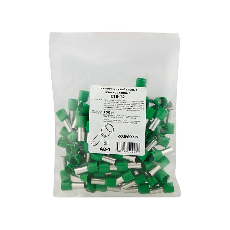 | Исполнение | Втулочные наконечники состоят из медной луженой трубки, один конец которой развальцован для облегчения ввода многожильного провода, и полиамидной изолирующей манжеты. |