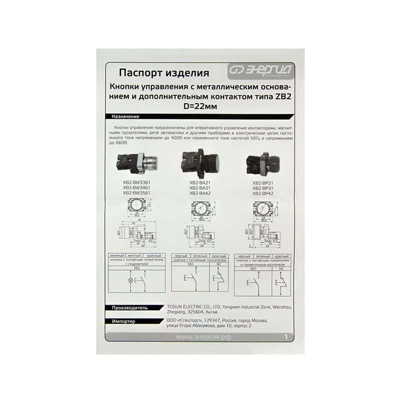 Кнопки управления серии XB2-BA42 служат средством оперативного контроля в электрических цепях. Они применяются в схемах управления электродвигателями, осветительными установками и другими силовыми нагрузками для следующих операций: