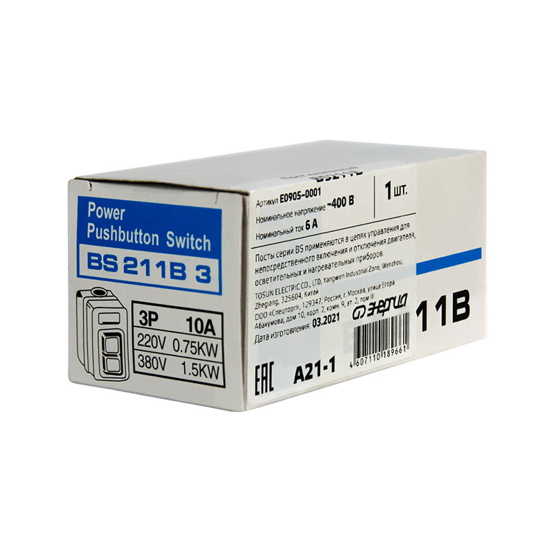 Пост кнопочный BS211B 3P 6A 2 кнопки on/off ЭНЕРГИЯ купить недорого