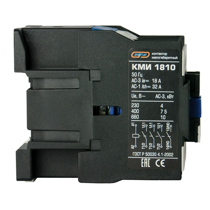 Контакторы серии КМИ — это дистанционно управляемые коммутационные аппараты, предназначенные для коммутации цепей переменного тока с высокой нагрузкой. Диапазон коммутируемых токов составляет от 9 до 95 А. Модели с током до 40 А обеспечивают одну группу дополнительных контактов для функций включения и выключения. Контакторы с токами нагрузки выше 40 А оснащены двумя группами: одной замыкающей и одной размыкающей.