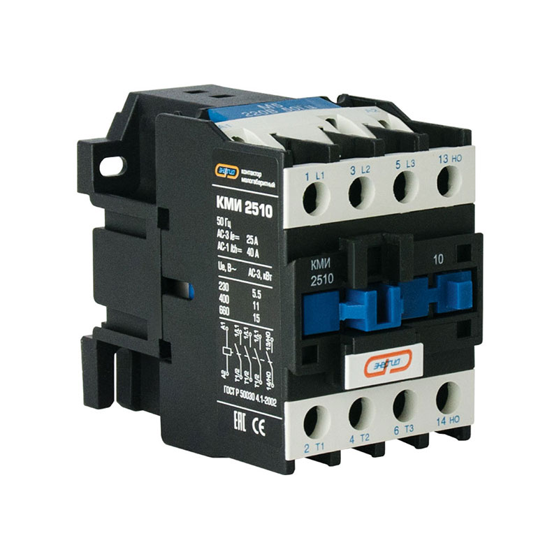 Контакторы серии КМИ — это дистанционно управляемые коммутационные аппараты, предназначенные для коммутации цепей переменного тока с высокой нагрузкой. Диапазон коммутируемых токов составляет от 9 до 95 А. Модели с током до 40 А обеспечивают одну группу дополнительных контактов для функций включения и выключения. Контакторы с токами нагрузки выше 40 А оснащены двумя группами: одной замыкающей и одной размыкающей.