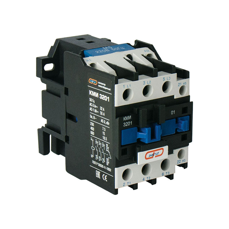 Контакторы серии КМИ — это дистанционно управляемые коммутационные аппараты, предназначенные для коммутации цепей переменного тока с высокой нагрузкой. Диапазон коммутируемых токов составляет от 9 до 95 А. Модели с током до 40 А обеспечивают одну группу дополнительных контактов для функций включения и выключения. Контакторы с токами нагрузки выше 40 А оснащены двумя группами: одной замыкающей и одной размыкающей.
