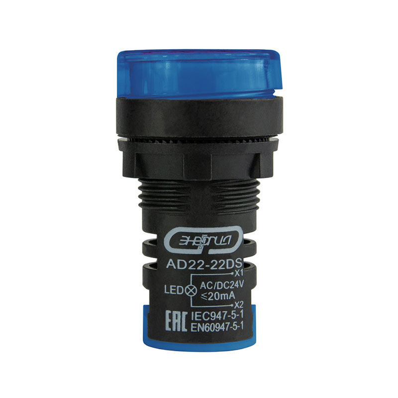 Лампа сигнальная AD22-22D d22мм синяя LED 24В AC/DC цилиндр ЭНЕРГИЯ