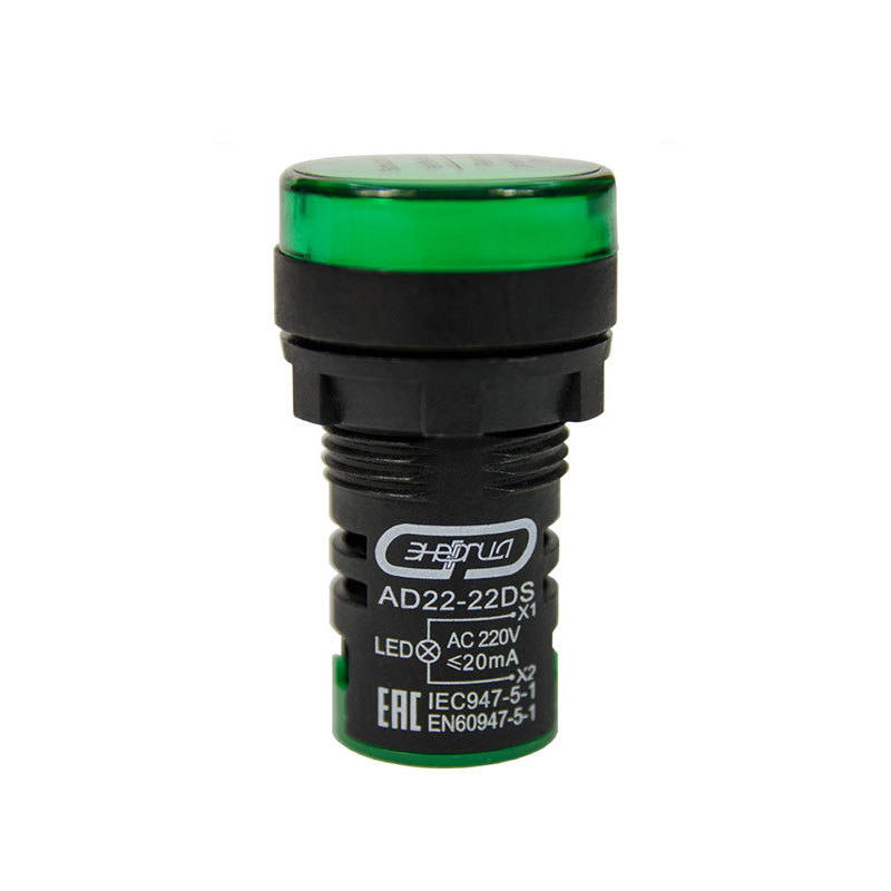 Лампа сигнальная AD22-22D d22мм зеленая LED 230В цилиндр ЭНЕРГИЯ