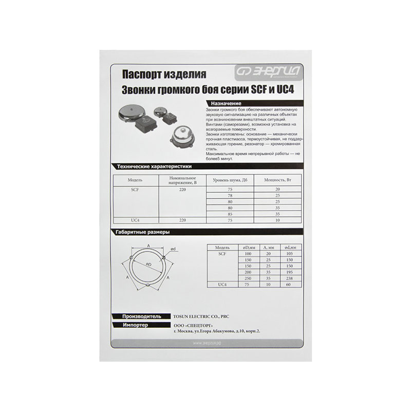 Звонок SCF 250 ЭНЕРГИЯ