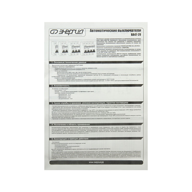 Автоматический выключатель ВА47-29 1P 2А (С) 6кА ЭНЕРГИЯ купить недорого
