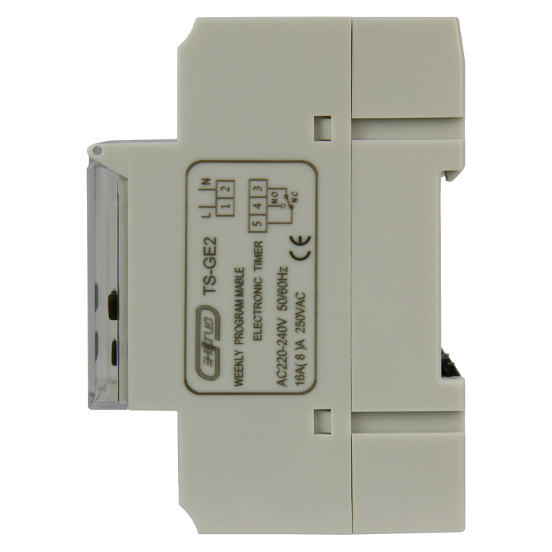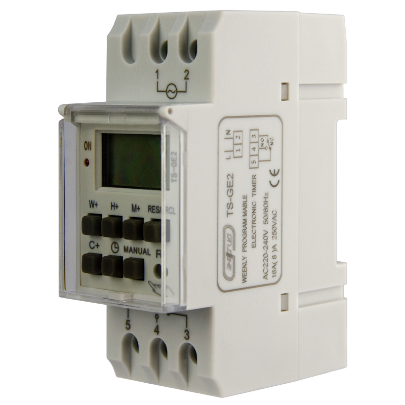 TS-GE2 — простой в настройке и надёжный недельный таймер для автоматизации дома, офиса и производства. Это практичное решение для автоматического управления освещением, отоплением, вентиляцией и другим электрооборудованием. С его помощью вы легко настроите до 8 программ включения и выключения в день по гибкому недельному графику, выбрав любой из 16 готовых шаблонов дней (рабочие дни, выходные, свои комбинации). Устройство отличается интуитивной понятной настройкой, высокой надёжностью и предназначено для монтажа в стандартный электрощит.