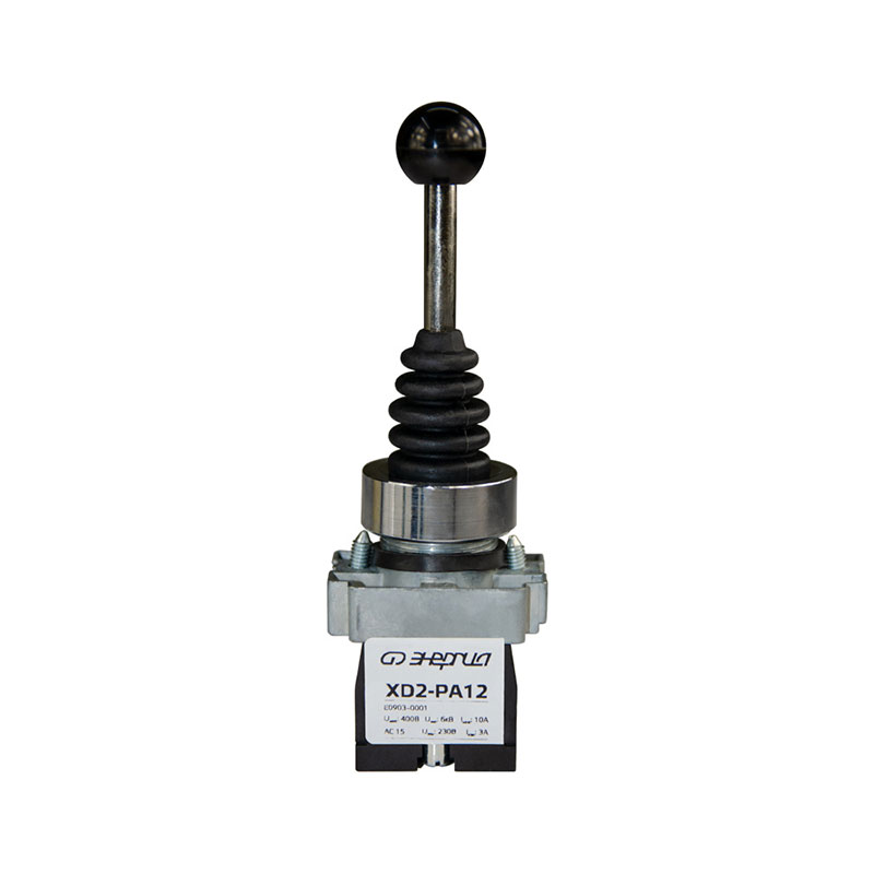 Манипулятор серии XD2 «Энергия» — механизм дискретного ввода с фиксированными положениями рычага (вверх/ вниз/ влево/ вправо). Каждое положение формирует однозначную команду для изменения направления движения управляемого механизма. Мгновенное срабатывание переключателя при переводе рычага обеспечивает минимальную задержку отклика системы и четкую тактильную обратную связь для оператора.