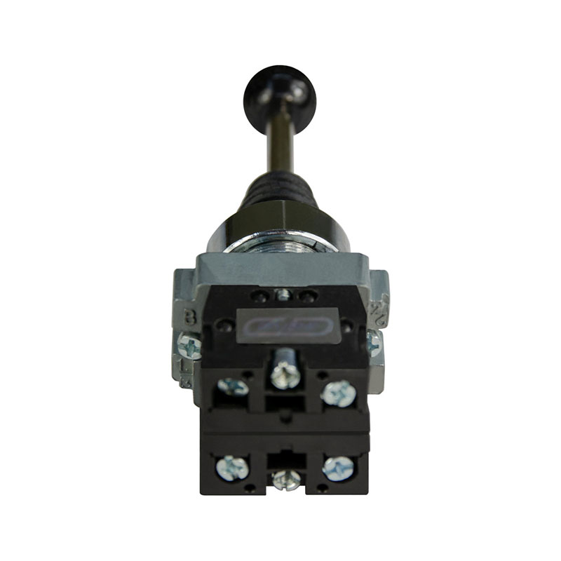 Джойстик-манипулятор XD2-PA12 представляет собой двухпозиционный переключатель с фиксацией положения. Коммутационный узел включает 2 нормально разомкнутых контакта (2НО).