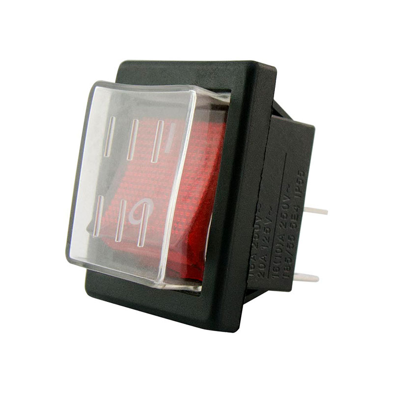 Клавишный переключатель YL208-01 вкл-откл 2 гр. конт. черн./красн. влагозащ. (30шт/упак) ЭНЕРГИЯ