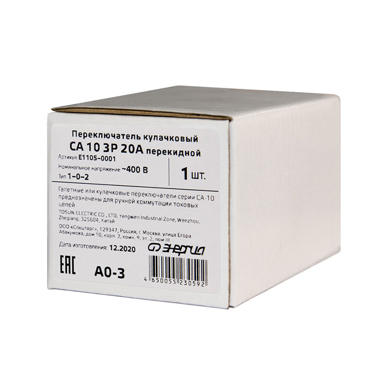 Переключатель кулачковый CA10 3P 20А ( 1-0-2 ) перекидной ЭНЕРГИЯ купить недорого