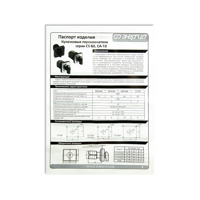Кулачковые (галетные) переключатели серии, CS-68, СА–10 предназначены для ручной коммутации токовых цепей, например, для включения и отключения электродвигателей, трансформаторов небольшой мощности и других электрических устройств.