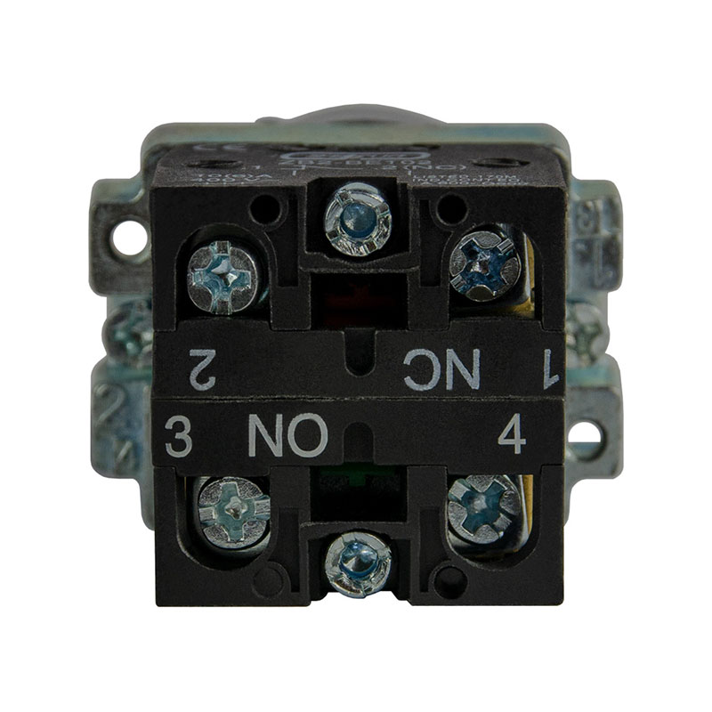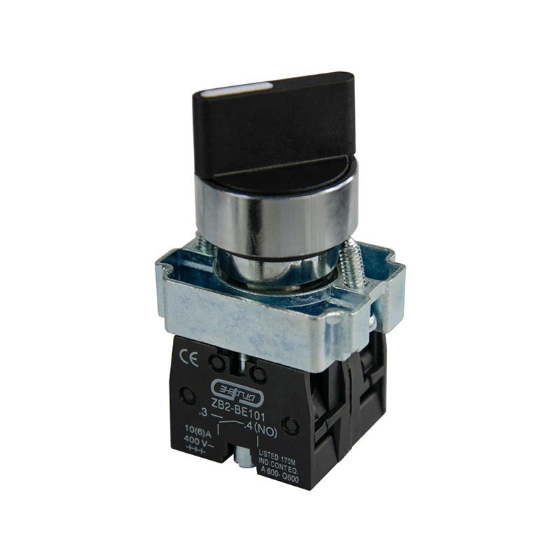 Переключатель выполнен в прочном корпусе, что гарантирует его надежность и долговечность. Стандартная ручка позволяет оператору легко и быстро переключать режимы работы. Механизм оснащен контактной группой, состоящей из одного нормально открытого (НО) и одного нормально закрытого (НЗ) контакта. Это позволяет одновременно включать одну цепь и отключать другую, что расширяет возможности управления по сравнению с моделями, имеющими только один нормально открытый контакт.