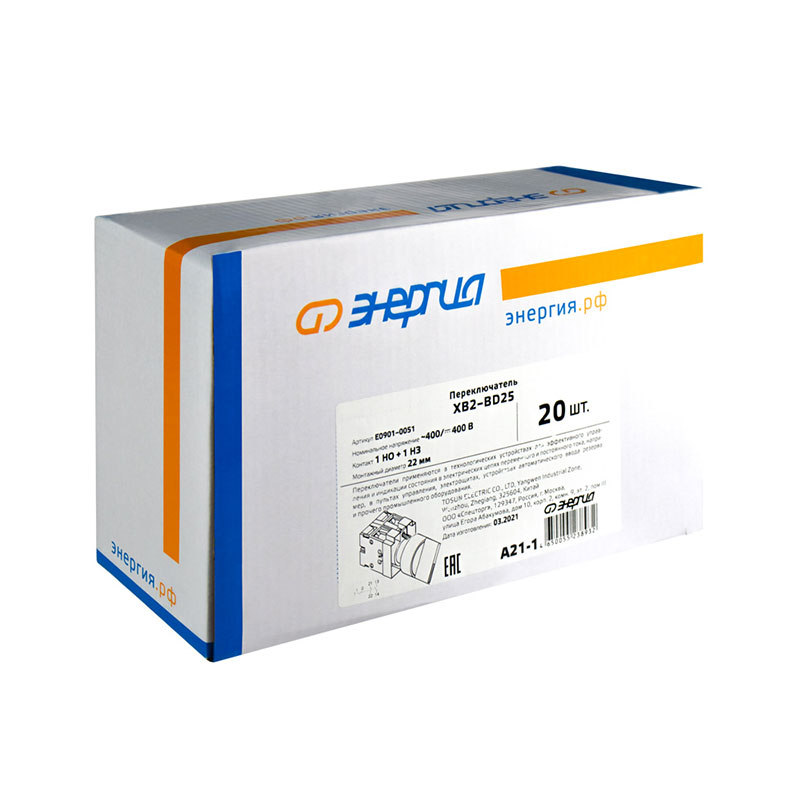 Переключатель XB2-BD25 Энергия – это двухпозиционный модульный переключатель, предназначенный для коммутации цепей управления. Фиксированные положения «I» (включено) и «0» (выключено) обеспечивают четкое и надежное управление нагрузкой в промышленных и бытовых электрощитах.