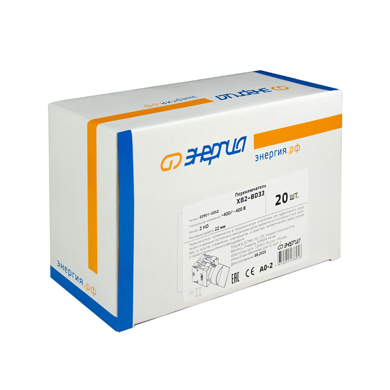 Переключатель XB2-BD33 Энергия – это трехпозиционный модульный переключатель с тремя фиксированными положениями: «I» (включено 1), «0» (выключено) и «II» (включено 2). Предназначен для коммутации двух независимых цепей управления в промышленных щитах и системах автоматизации.
