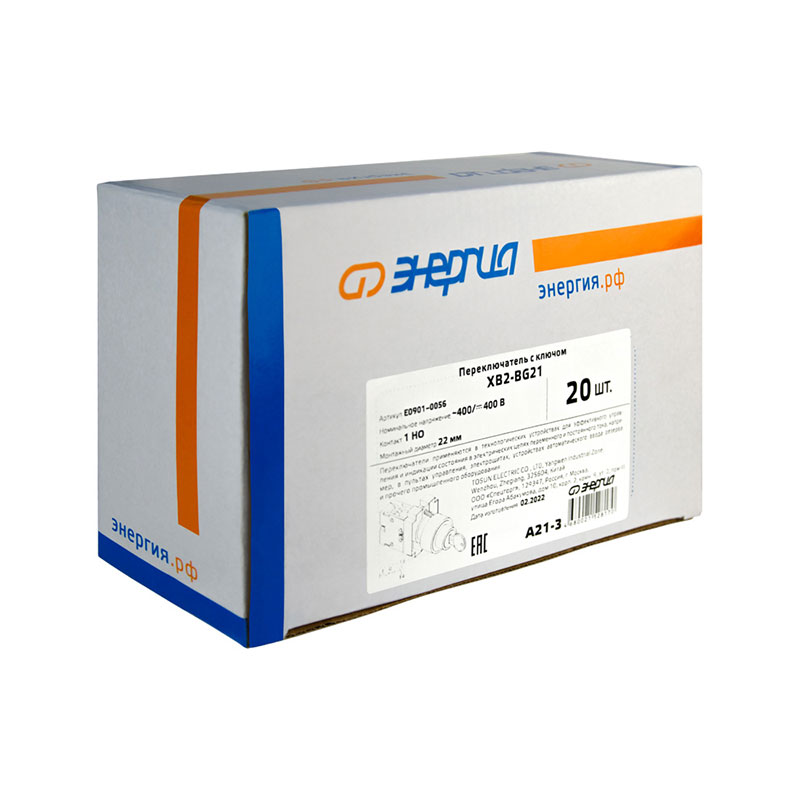 Переключатель XB2-BG21 Энергия представляет собой аппарат для коммутации электрических цепей, имеющий два положения («I» и «0») с фиксацией. Управление осуществляется с помощью ключа, что обеспечивает защиту от несанкционированного доступа. Монтажный диаметр составляет 22 мм.