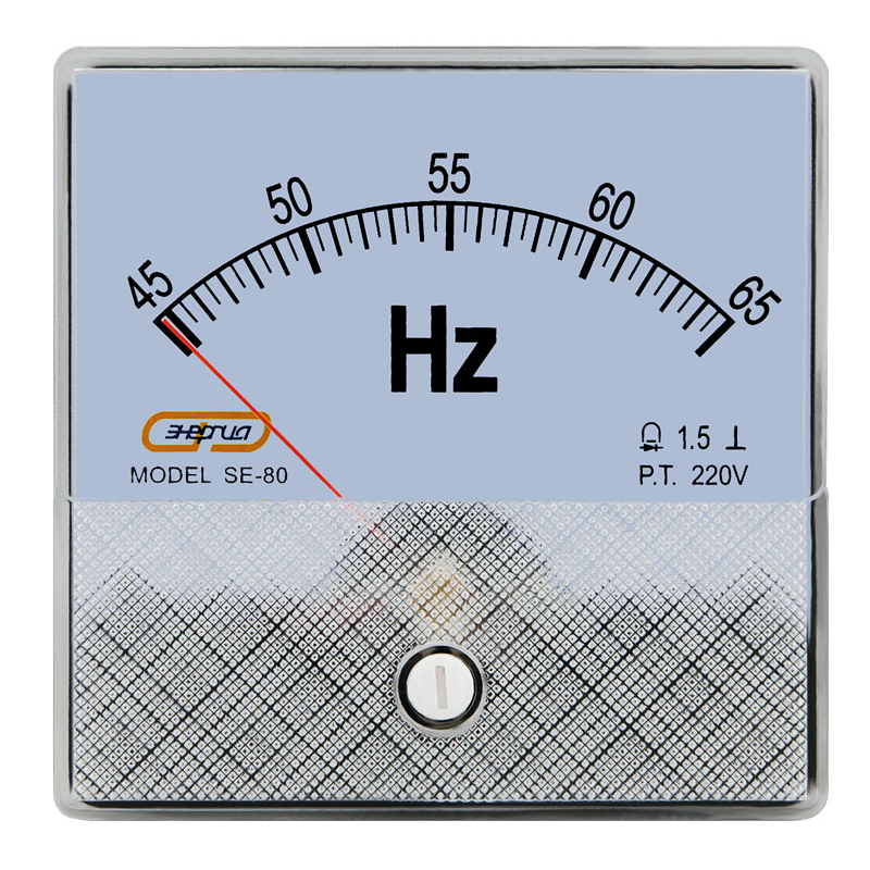 Частотомер SE-80 «Энергия» осуществляет измерение частоты путем анализа периодичности изменения напряжения в электрической цепи. Результат отображается на аналоговом стрелочном индикаторе, что позволяет быстро и удобно считывать данные. Прибор предназначен для измерения частоты переменного тока в диапазоне 45-65 Гц, встраивается в цепь напрямую, без дополнительных преобразователей. Корпус частотомера стандартного размера 80 x 80 мм, предназначен для монтажа на дверцу электрошкафа или панель управления. Простая электромеханическая конструкция обеспечивает долгий срок службы в промышленных условиях.