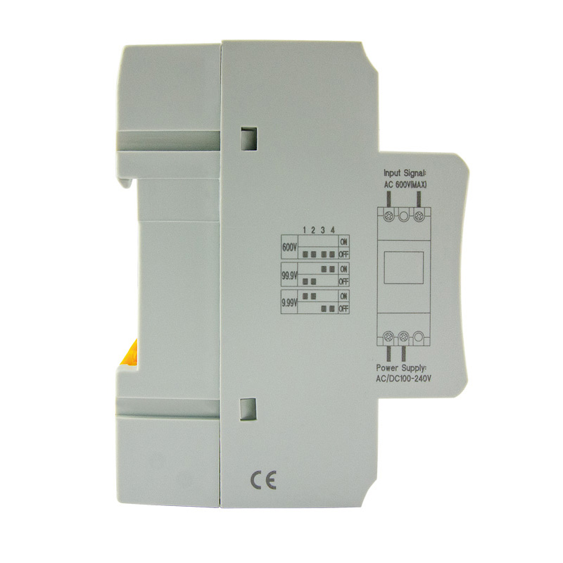 Прибор выполнен в модульном корпусе для стандартного монтажа на DIN-рейку шириной 35 мм, что обеспечивает легкую интеграцию в электрораспределительные щиты. Вольтметр предусматривает три независимых диапазона измерения, выбираемых механическими переключателями. Яркий светодиодный индикатор обеспечивает хорошую читаемость показаний в условиях недостаточной освещенности.