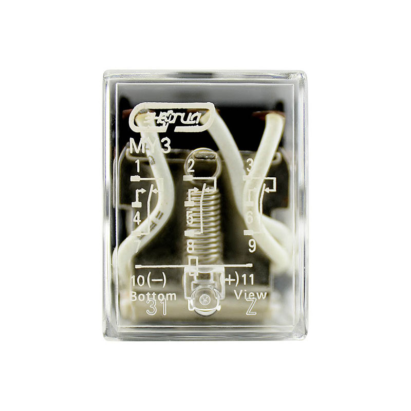 Реле MY — электромеханическое устройство, состоящее из корпуса, контактной системы, управляющего электромагнита и выводов. При подаче напряжения на катушку электромагнита состояние контактов изменяется, а при снятии напряжения возвращается в исходное состояние.