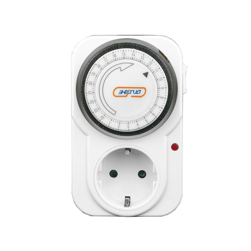 Таймер-розетка TS-MD3 ЭНЕРГИЯ — это простое и надёжное механическое устройство. Её работа настраивается вручную: с помощью поворотного диска и переключателей на корпусе вы задаёте нужный режим и время работы.