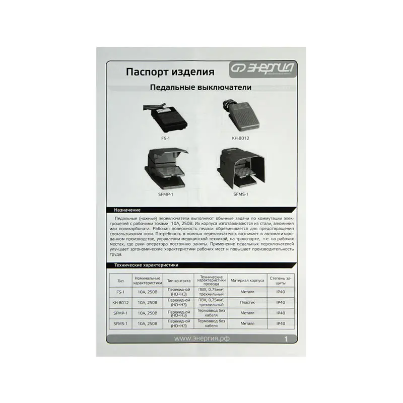 Педальный выключатель KH-8012 предназначен для дистанционного управления коммутации электроцепей с помощью ноги. Нажатие на педаль обеспечивает срабатывание механизма, который замыкает или размыкает электрическую цепь в зависимости от конструкции выключателя.