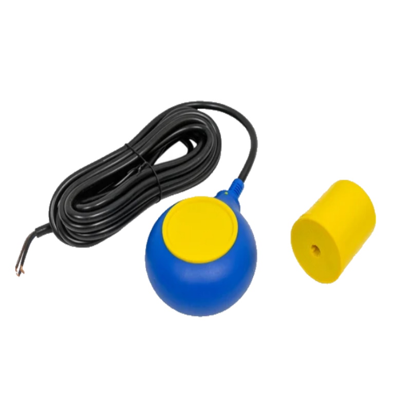 Стандартная комплектация включает кабель длиной 2 или 3 метра, однако этот выключатель с кабелем длиной 5 метров, что удобно при установке в глубоких резервуарах или сложных условиях, где требуется большая высота опускания. Поплавковый корпус и грузило для регулировки уровня срабатывания обеспечивают возможность тонкой настройки порога активации. Грузило перемещается по кабелю, что позволяет точно устанавливать уровень срабатывания поплавка без использования дополнительных инструментов. Например, при наполнении резервуара грузило фиксируется в положении, при котором поднявшийся поплавок развернется и разомкнет контакты, отключив питание насоса.