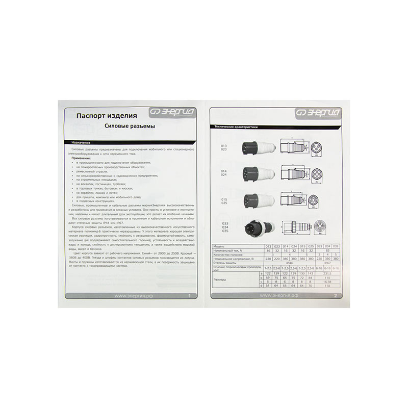 Силовые разъемы «Энергия» предназначены для безопасного подключения промышленного и бытового оборудования к сетям переменного тока. По сути, это усиленные версии стандартных вилок и розеток, рассчитанные на высокие токи, частые подключения и эксплуатацию в неблагоприятной среде. Контактные группы выполняются из латуни, а крепежные элементы и пружины — из нержавеющей стали. Это обеспечивает защиту от коррозии и повышенную безопасность соединения.