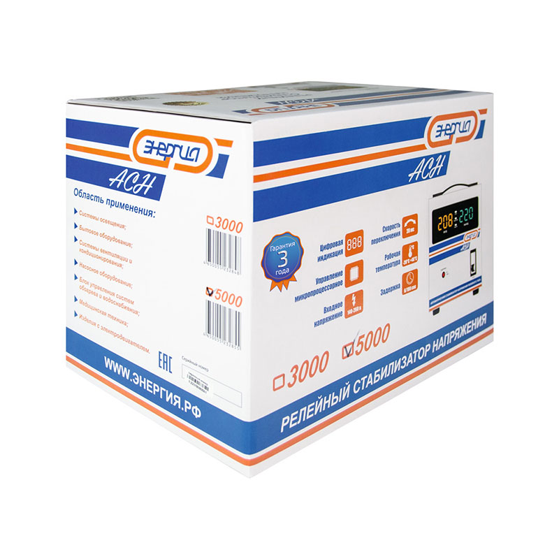Стабилизатор «Энергия АСН» — универсальное решение для обеспечения стабильного электропитания в любых условиях: от жилой квартиры до промышленного цеха.