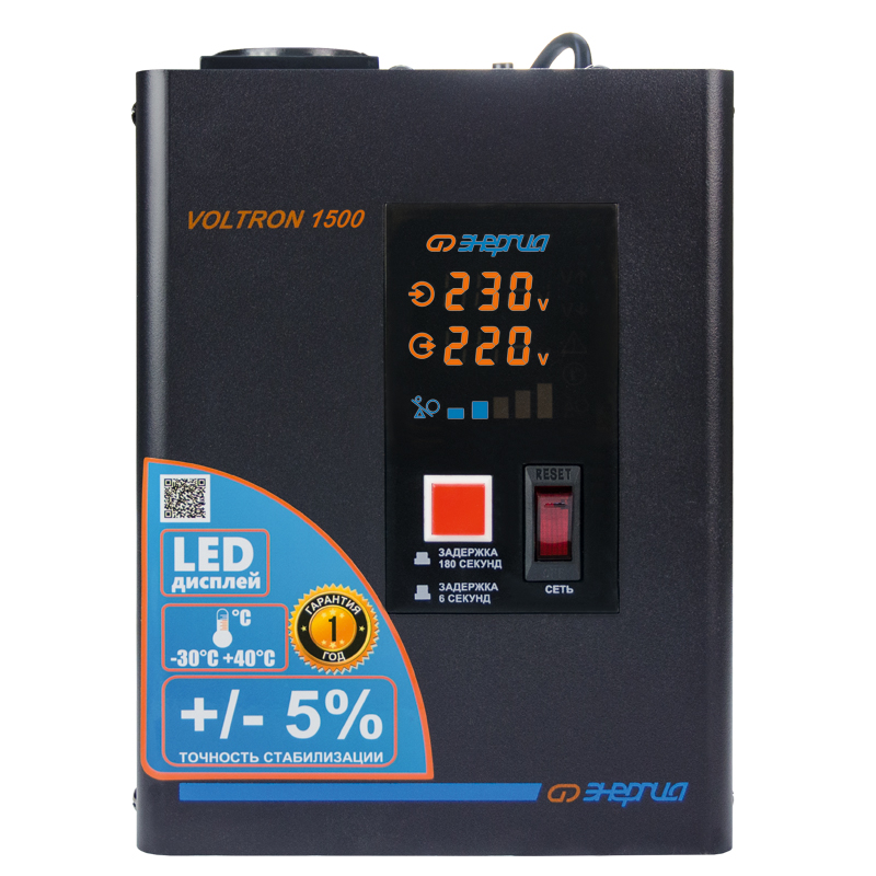 Стабилизаторы напряжения ЭНЕРГИЯ Voltron представляют собой надежное решение для обеспечения стабильной работы электрооборудования в условиях нестабильного напряжения. Наиболее значимые эксплуатационные преимущества данной серии — широкий рабочий температурный диапазон, в том числе режим до -30°C, и точность стабилизации на уровне ±5%.