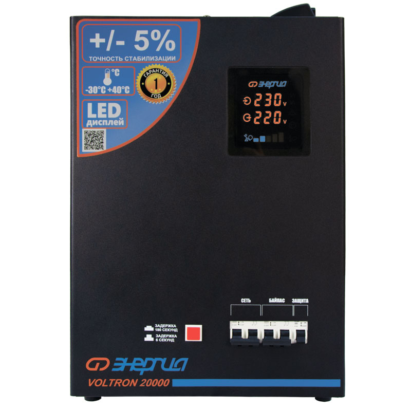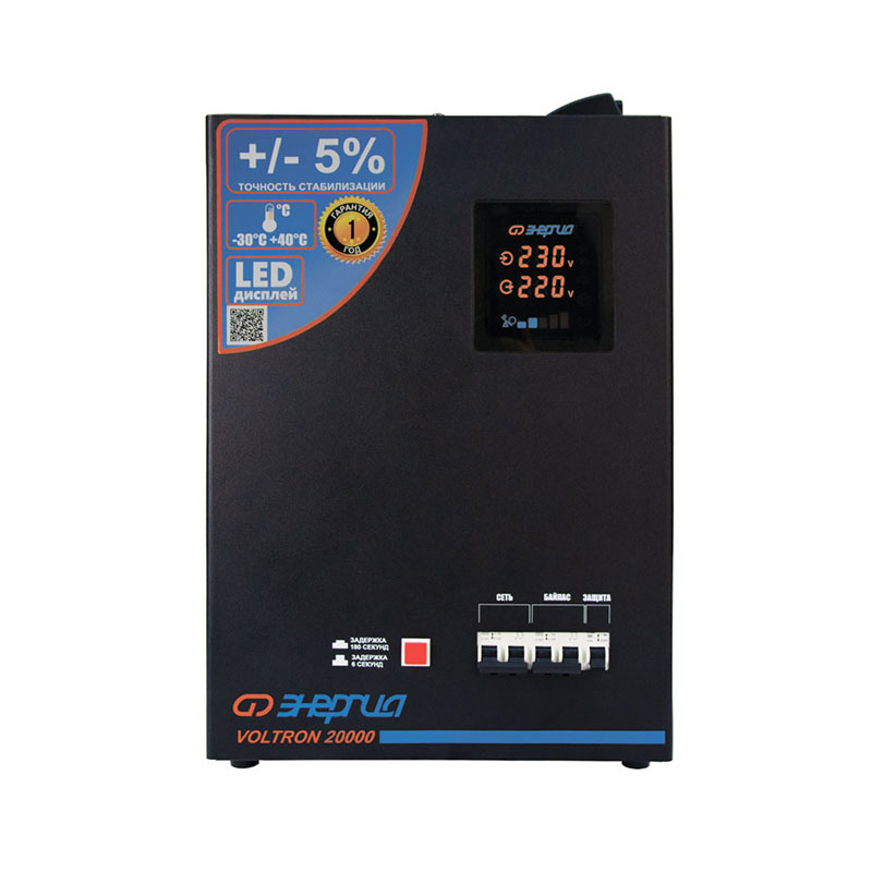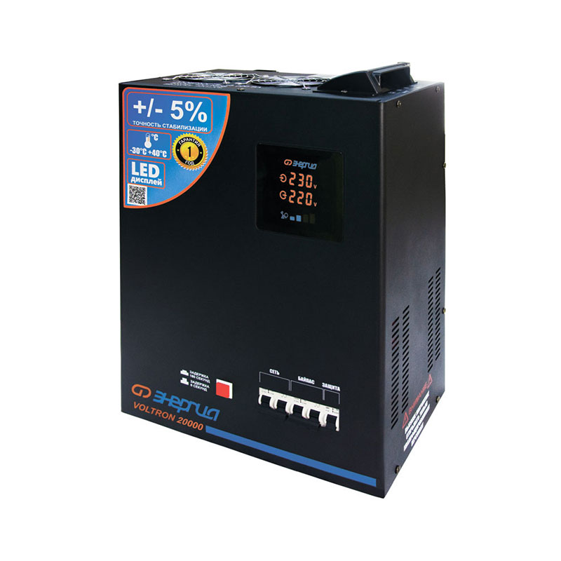 Стабилизаторы напряжения ЭНЕРГИЯ Voltron представляют собой надежное решение для обеспечения стабильной работы электрооборудования в условиях нестабильного напряжения. Наиболее значимые эксплуатационные преимущества данной серии — широкий рабочий температурный диапазон, в том числе режим до -30°C, и точность стабилизации на уровне ±5%.