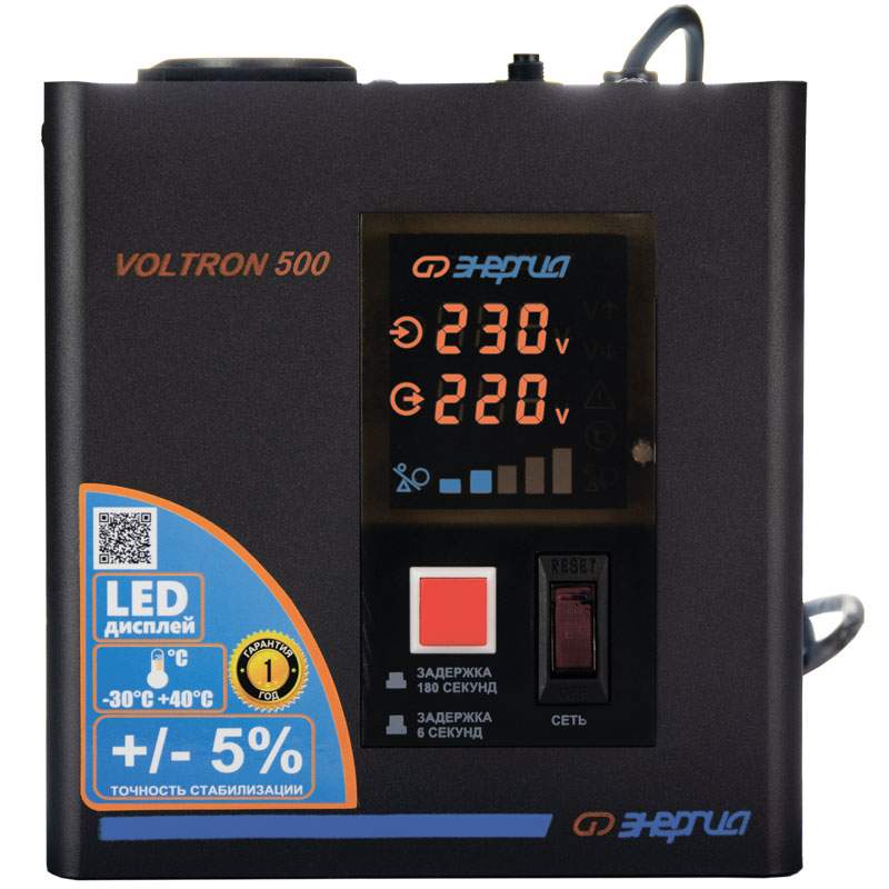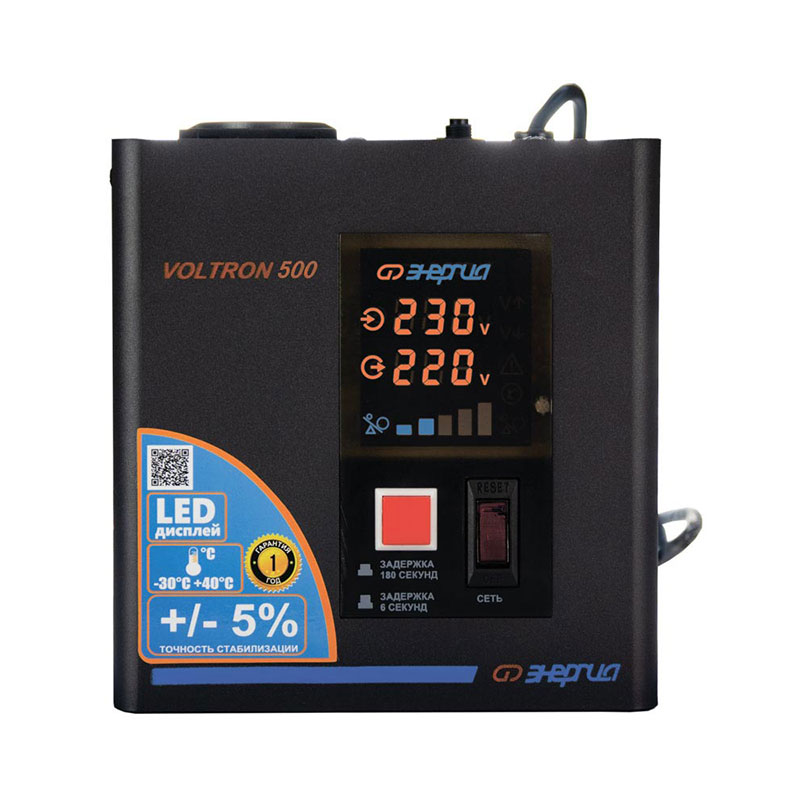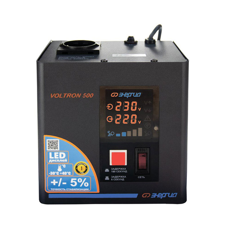 Стабилизаторы напряжения ЭНЕРГИЯ Voltron ориентированы на эксплуатацию в сложных климатических условиях. Аппарат сохраняет работоспособность при температурах до –30°C, что позволяет рекомендовать его для неотапливаемых помещений и регионов с холодным климатом, что формирует его основное преимущество для использования на дачах, в загородных домах и на промышленных объектах с непостоянным отоплением.