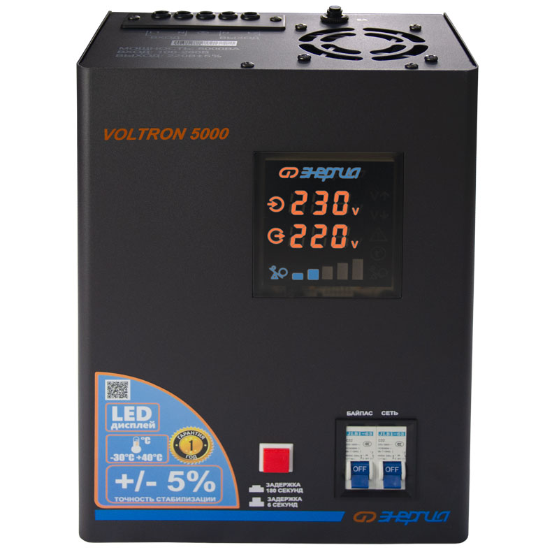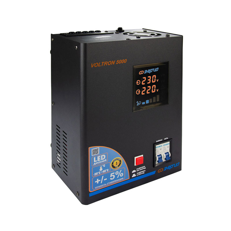 Установка и управление стабилизаторами Voltron просты и интуитивно понятны, что делает их доступными для пользователей с минимальным уровнем технической подготовки. Цифровой дисплей позволяет отслеживать текущие параметры сети и контролировать работу устройства в режиме реального времени. Конструкция предусматривает универсальный настенный или напольный монтаж. Металлический корпус выполняет не только защитную функцию, но и способствует эффективному теплоотводу.