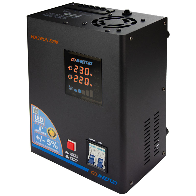 Стабилизаторы напряжения ЭНЕРГИЯ Voltron представляют собой надежное решение для обеспечения стабильной работы электрооборудования в условиях нестабильного напряжения. Наиболее значимые эксплуатационные преимущества данной серии — широкий рабочий температурный диапазон, в том числе режим до -30°C, и точность стабилизации на уровне ±5%.