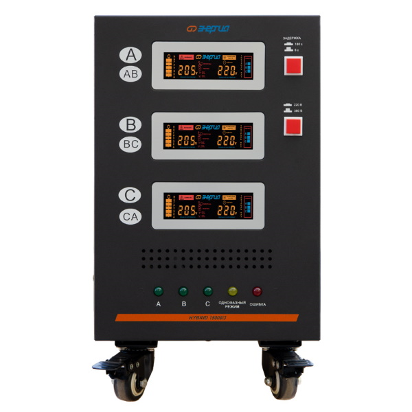 Основная задача стабилизатора напряжения Энергия серии Hybrid II поколения — обеспечить бесперебойное и качественное электропитание для широкого спектра оборудования в условиях нестабильных сетей. Он эффективно защищает подключенные устройства не только от длительных и значительных отклонений напряжения от нормы, но и от кратковременных высоковольтных импульсов и высокочастотных помех. Аппарат использует комбинированный метод регулировки, который переключается между релейным и сервоприводным (электромеханическим) принципами в зависимости от уровня входного напряжения.
