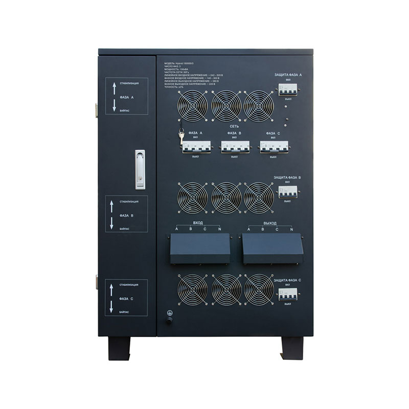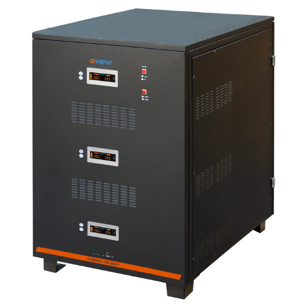 Основная задача стабилизатора напряжения Энергия серии Hybrid II поколения — обеспечить бесперебойное и качественное электропитание для широкого спектра оборудования в условиях нестабильных сетей. Он эффективно защищает подключенные устройства не только от длительных и значительных отклонений напряжения от нормы, но и от кратковременных высоковольтных импульсов и высокочастотных помех. Аппарат использует комбинированный метод регулировки, который переключается между релейным и сервоприводным (электромеханическим) принципами в зависимости от уровня входного напряжения.