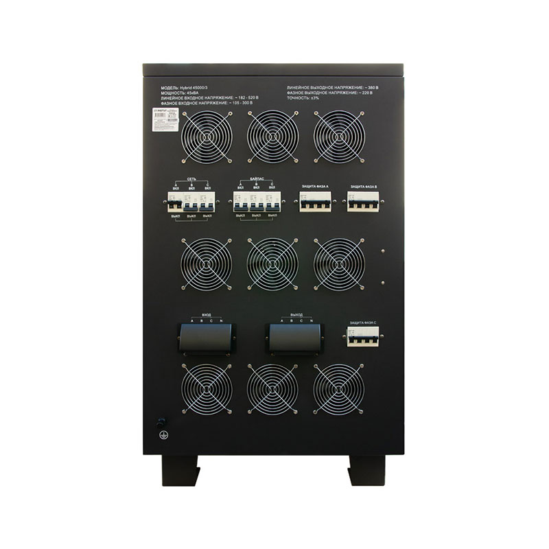 Основная задача стабилизатора напряжения Энергия серии Hybrid II поколения — обеспечить бесперебойное и качественное электропитание для широкого спектра оборудования в условиях нестабильных сетей. Он эффективно защищает подключенные устройства не только от длительных и значительных отклонений напряжения от нормы, но и от кратковременных высоковольтных импульсов и высокочастотных помех. Аппарат использует комбинированный метод регулировки, который переключается между релейным и сервоприводным (электромеханическим) принципами в зависимости от уровня входного напряжения.