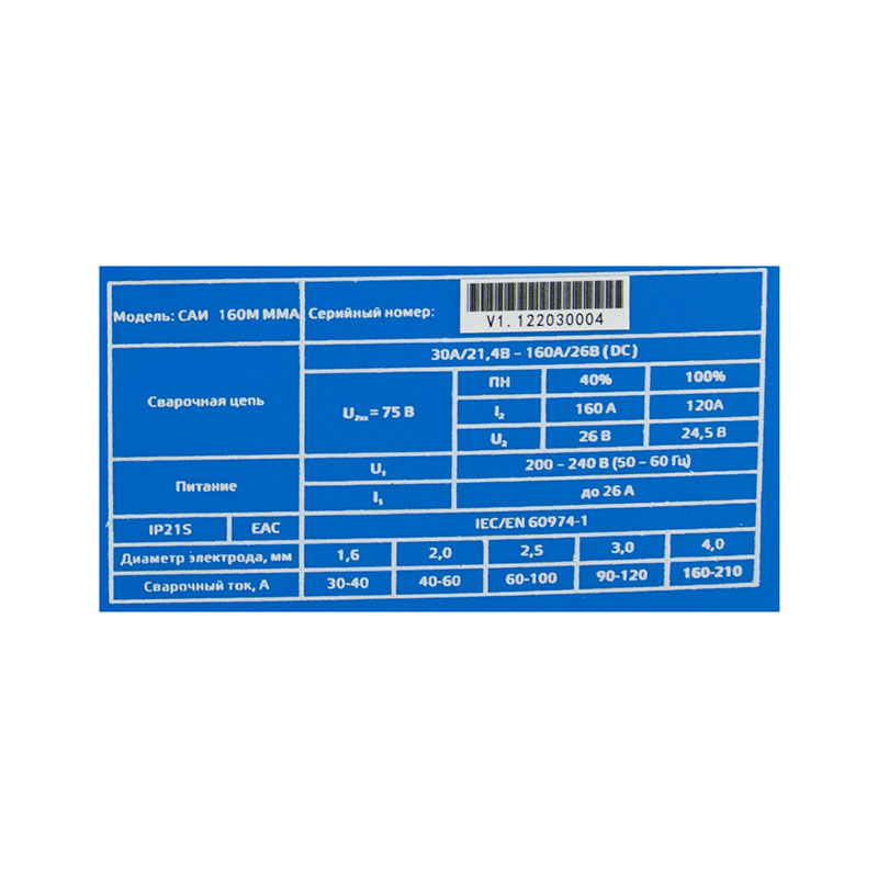 Сила сварочного тока: от 30 до 160А