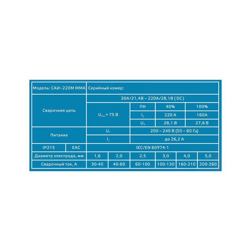 | Длина кабеля держателя электродов, м | 1.6 |