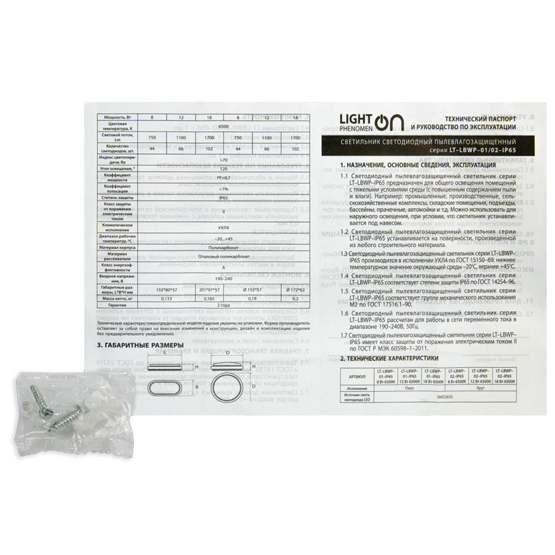 • Вы можете выбрать форму (овал или круг) и нужную мощность — 8, 12 или 18 Вт. Холодный белый свет 6500К создает четкую, яркую освещенность. Монтаж прост и не требует специального инструмента: светильник фиксируется на поверхности саморезами из комплекта поставки.