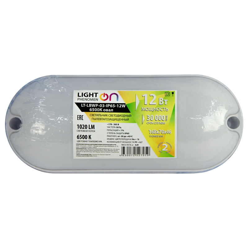 Светодиодный светильник LT-LBWP-03/06-IP65: работает при любых условиях, обеспечивая стабильное освещение. В промышленных цехах, на складах, в сельхозпредприятиях и автомойках — везде, где обычный свет быстро выходит из строя из-за пыли и влаги, эта модель показывает себя безотказно. Степень защиты IP65 гарантирует: пыль и вода не проникнут внутрь. Корпус выполнен из ударопрочного поликарбоната, а светодиоды обеспечивают ровный яркий свет без мерцания. Светильник подойдет для монтажа на любые поверхности и работает даже при скачках напряжения — от 170 до 265 В. Выбирайте между овальной и круглой формой под задачи объекта. Это не просто светильник, а рабочее оборудование для тех, кто ценит надёжность.